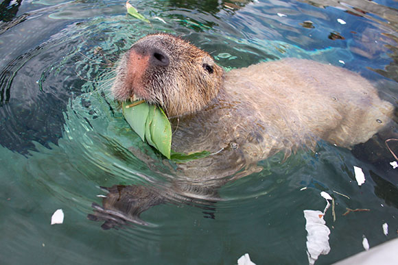 ということで、前回のコラムで紹介したカピバラの特技、水泳する姿を一気に紹介します。